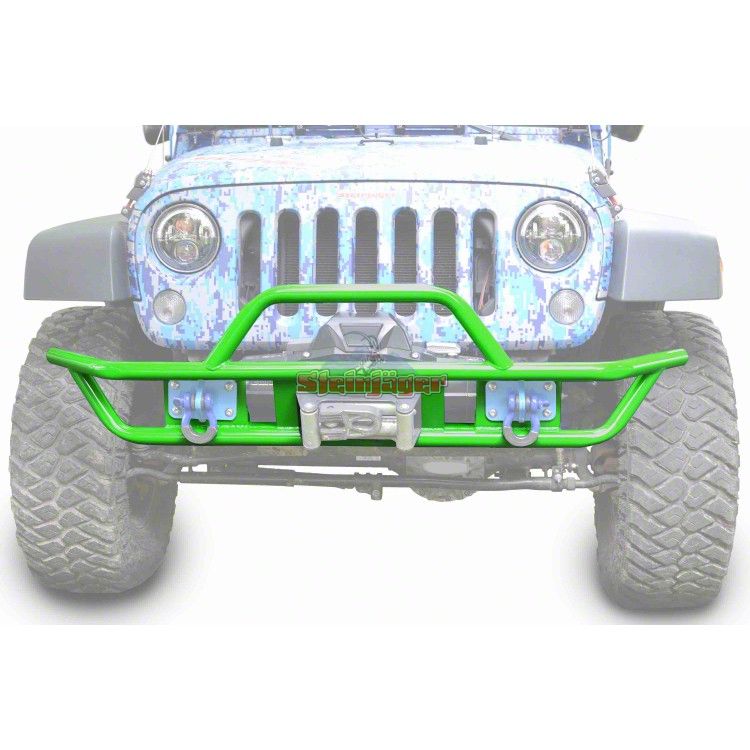 Application. The Neon Green Steinjager Tube Front Bumper is compatible with 2007-2018 Jeep Wrangler JK models.