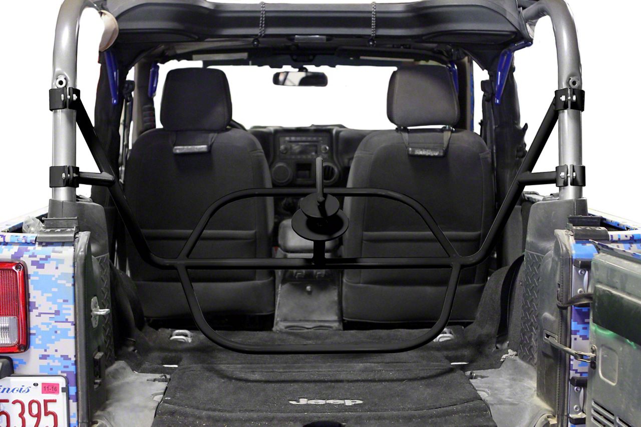 Application. The Steinjager Internal Spare Tire Carrier in Black is designed to fit on all 2007-2018 Jeep Wrangler JK 2-Door models.