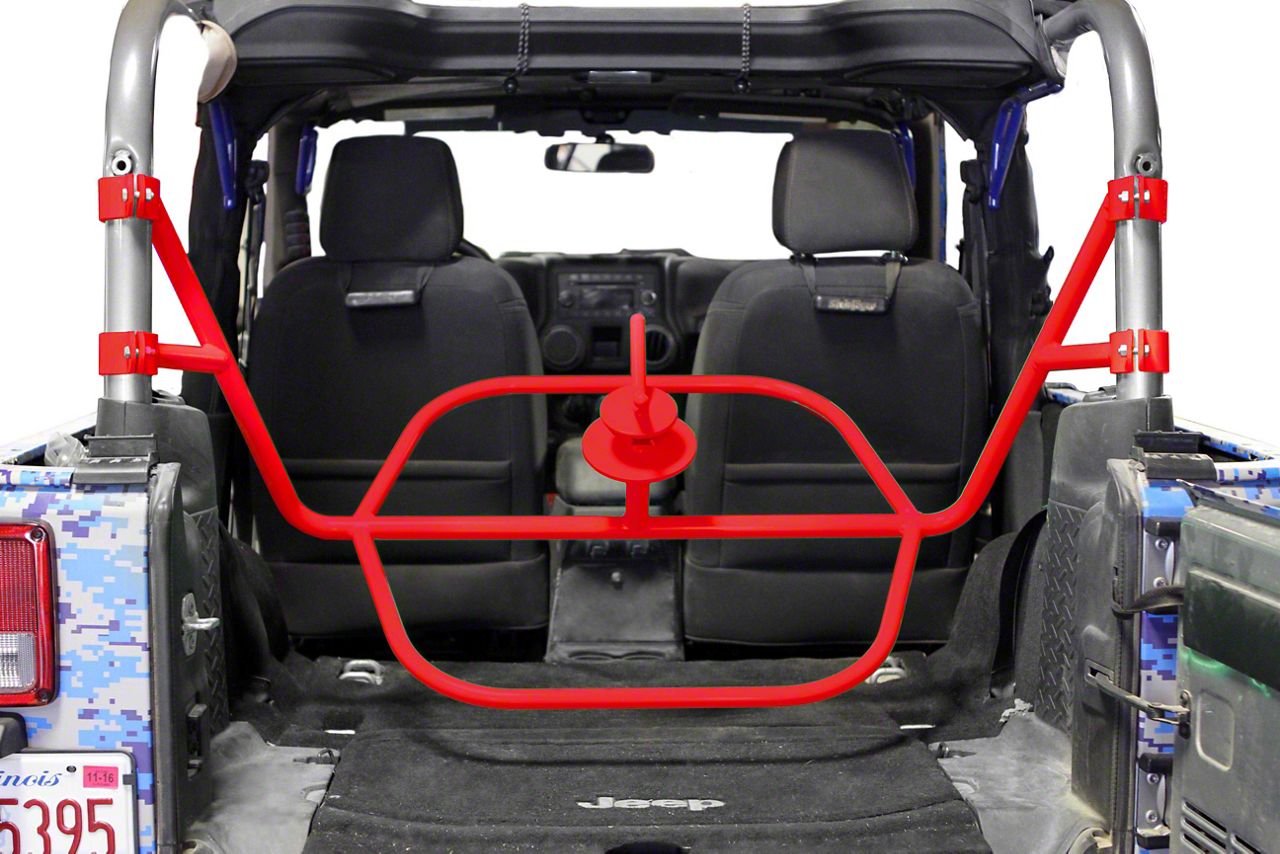 Application. This Steinjager Internal Spare Tire Carrier is designed for use on 2007-2018 Jeep Wrangler JK 2-door models.