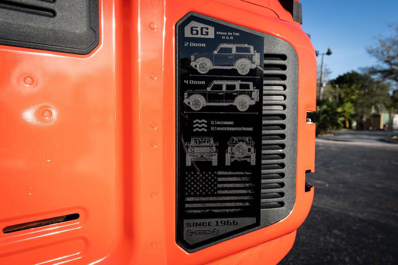 Application. Specifically engineered for all 2021-2025 Bronco models, the StickerFab Acrylic Laser Series Tailgate Plate seamlessly fits onto the tailgate, providing a perfect blend of style and simplicity in enhancing your vehicle’s exterior.