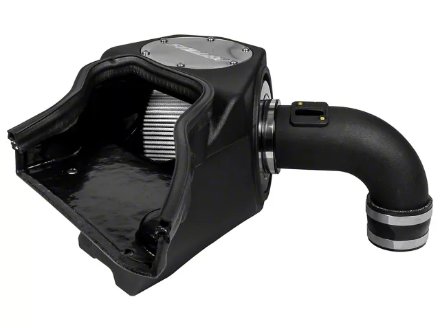 Construction and Appearance. Constructed in the USA, the TruPower intake features a large 3-inch mandrel-bent intake tube and a specially designed scoop for superior airflow. The intake includes a dry filter with a clear inspection window, a smooth interior for minimal turbulence, and a durable finish. This premium setup removes the factory intake’s hard bends and restrictive lattice structure to promote efficient, laminar airflow. The scoop is built for optional use but highly recommended for maximum performance gains.