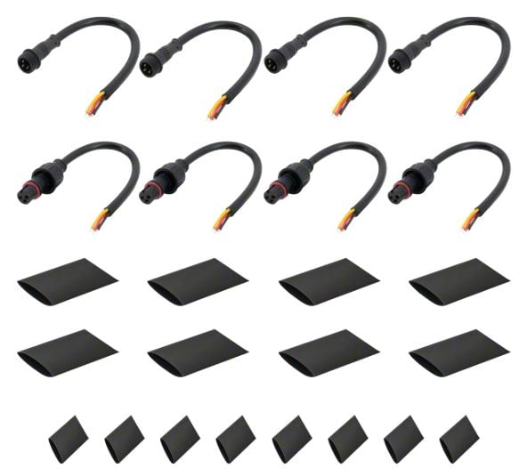 Every Piece You Need, Right in the Pack. The Stinger ENLIGHT10 Dynamic Connectors kit is a complete setup for a clean, professional-grade LED installation. Each 8-piece set includes 4 male and 4 female connectors, perfectly paired with 16 pieces of heat shrink tubing for added protection. Once soldered, the heat shrink sleeves slide over each connection point, sealing them against moisture, dust, and mechanical stress—critical for lighting setups exposed to the elements or heavy usage..