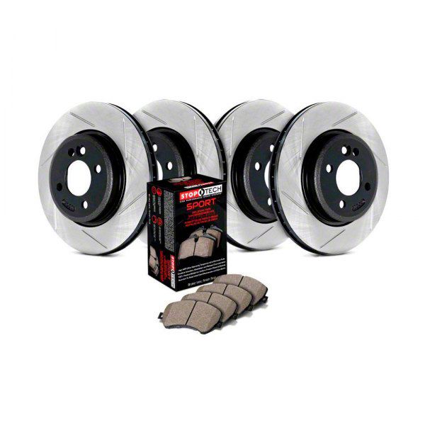 Description. Significant brake performance improvements using the factory calipers and pre-matched; direct-replacement (OEM) sized components. This StopTech Sport Axle Pack includes Slotted StopTech Sport Rotors; StopTech Sport Pads.