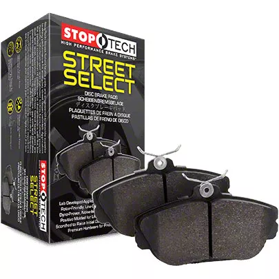 Description. StopTech Street Select Brake Pads provide superior stopping power and reliability for passenger cars and light trucks. StopTech engineers have developed two application specific friction compounds; semi-metallic and ceramic that combine improved stopping performance while reducing noise and dust. StopTech Street Select Brake Pads are installation ready with High Performance shims attached to eliminate noise and vibration. OE style gas slots and chamfers optimize braking performance especially in repeat stop situations. Application specific hardware is included with each pad set ensuring full restoration of system performance and extended service life.