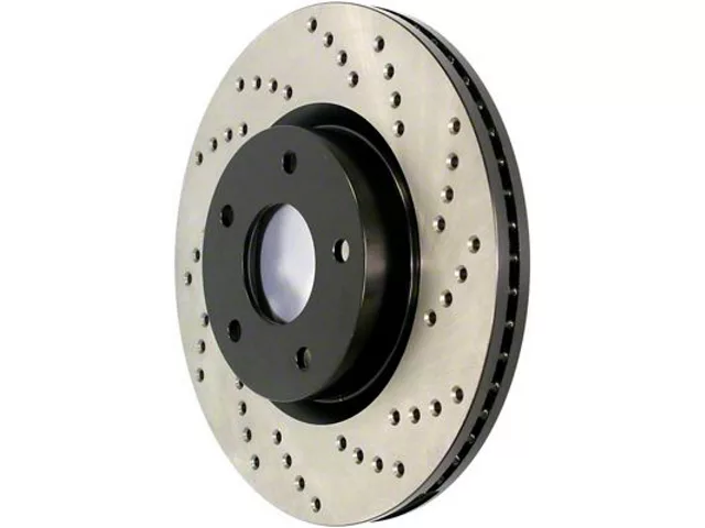 Description. StopTech Drilled Sport Rotors are 1-piece direct replacement brake discs for factory brake systems and stock calipers that look great behind your wheels ΓÇô and offer significantly improved braking performance. The unique cross-drilling aids with heat and brake dust dispersal; prevents glazing of the pads; adds bite and improves wet and dry braking performance. Built to last; the black e-coating provides protection from corrosion and the high carbon metallurgy (in most applications) offers quieter operation; better crack resistance and increased performance.