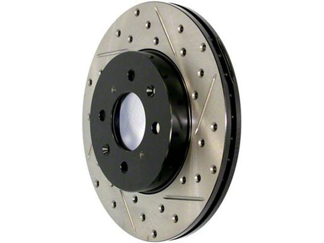 Description. StopTech Drilled and Slotted Sport Rotors are 1-piece direct replacement brake discs for factory brake systems and stock calipers that look great behind your wheels ΓÇô and offer significantly improved braking performance. The unique cross-drilling and slotting aids with heat and brake dust dispersal; prevents glazing of the pads; adds bite and improves wet and dry braking performance. Built to last; the black e-coating provides protection from corrosion and the high carbon metallurgy (in most applications) offers quieter operation; better crack resistance and increased performance.