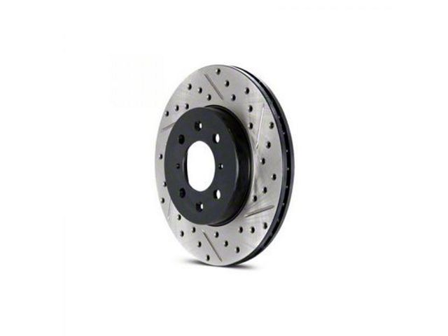 Description. StopTech Drilled and Slotted Sport Rotors are 1-piece direct replacement brake discs for factory brake systems and stock calipers that look great behind your wheels ΓÇô and offer significantly improved braking performance. The unique cross-drilling and slotting aids with heat and brake dust dispersal; prevents glazing of the pads; adds bite and improves wet and dry braking performance. Built to last; the black e-coating provides protection from corrosion and the high carbon metallurgy (in most applications) offers quieter operation; better crack resistance and increased performance.
