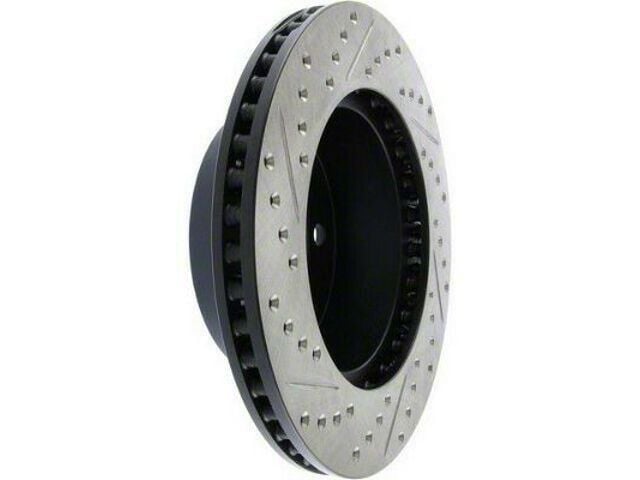 Description. StopTech Drilled and Slotted Sport Rotors are 1-piece direct replacement brake discs for factory brake systems and stock calipers that look great behind your wheels ΓÇô and offer significantly improved braking performance. The unique cross-drilling and slotting aids with heat and brake dust dispersal; prevents glazing of the pads; adds bite and improves wet and dry braking performance. Built to last; the black e-coating provides protection from corrosion and the high carbon metallurgy (in most applications) offers quieter operation; better crack resistance and increased performance.