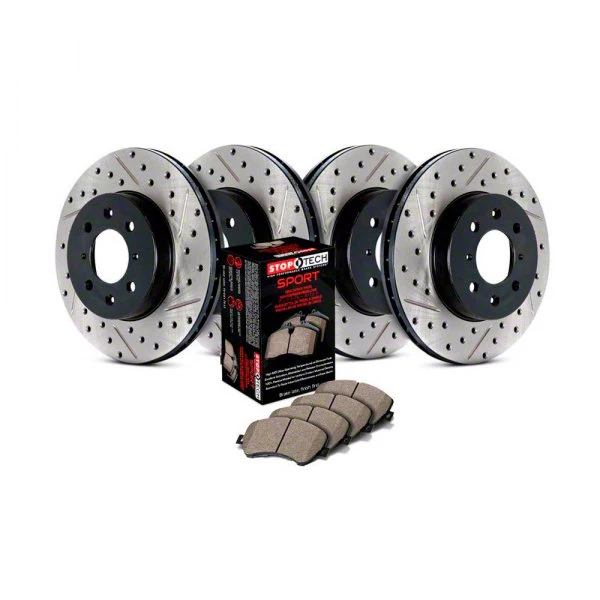 Significant brake performance improvements using the factory calipers and pre-matched; direct-replacement (OEM) sized components. This StopTech Sport Axle Pack includes drilled & slotted StopTech Sport Rotors; StopTech Sport Pads.