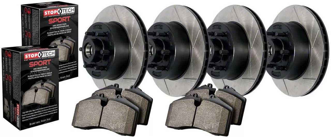 Upgrade Stopping. Elevate your Tundra's braking performance with the StopTech Truck Axle Slotted 5-Lug Brake Rotor and Pad Kit; Front and Rear. Designed for truck enthusiasts, this kit delivers superior stopping power, ensuring safety and control on the road. The slotted rotor design improves heat dissipation and minimizes brake fade. Say goodbye to overheated brakes during demanding stops, and enjoy shorter braking distances.
