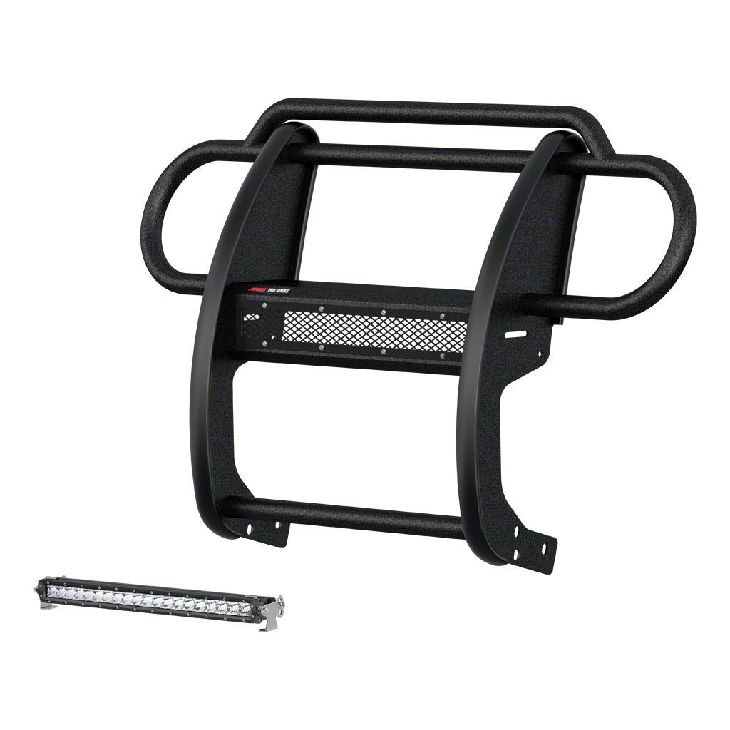 Reinforces the Jeep’s Front End. Add more front-end protection to your Jeep Wrangler JL by installing this Black Pro Series Grille Guard with 20-Inch LED Light Bar. This brawny accessory shields your vehicle’s front from trail debris and off-road hazards, making it easier to maintain your Jeep’s powerful appearance.