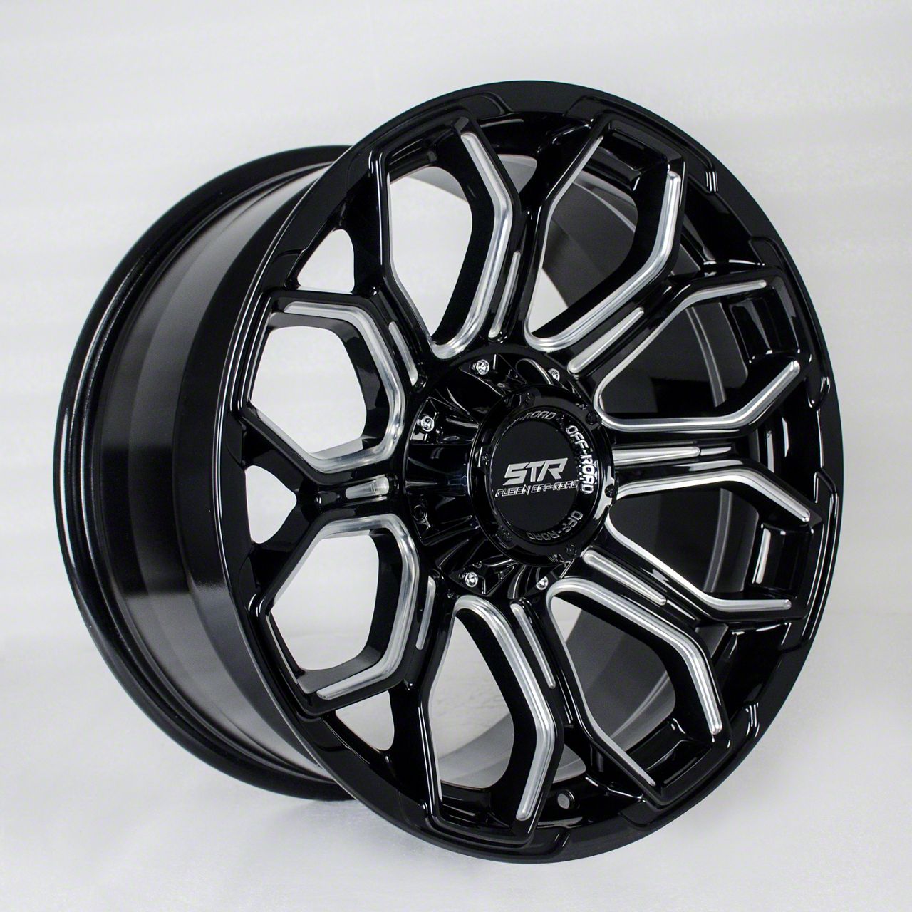 This 20x10 STR Fusion Offroad STR91 Gloss Black Milled 6-Lug Wheel; 20x10; 0mm Offset is completed in a gloss black finish with steel milled accents that will be the envy of everyone. For added looks and strength, there is a clear coat that protects against whatever the road throws at you.