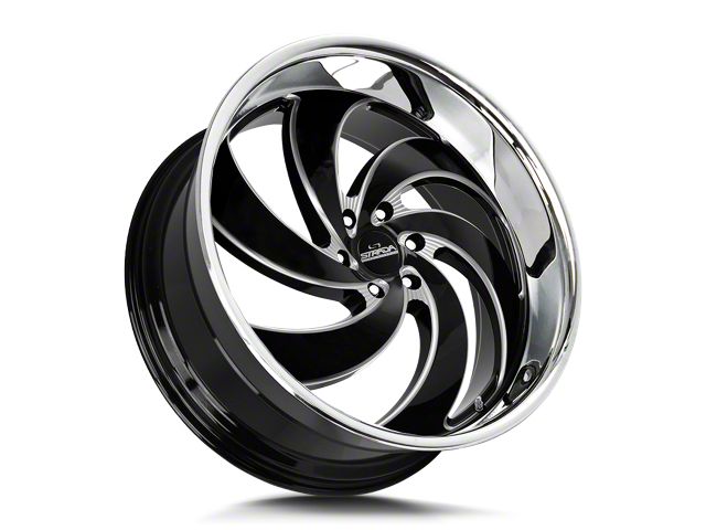 Strada Retro 6 Gloss Black Milled with Stainless Steel Lip 6-Lug Wheel; 24x10; 24mm Offset offers a sleek and assertive aesthetic that enhances a vehicle's visual presence. Its gloss black finish amplifies the appeal, making it a great match for bold styling themes. This wheel brings a refined edge to any build while maintaining a confident stance on the road. Crafted to elevate the appearance of a wide range of vehicles.