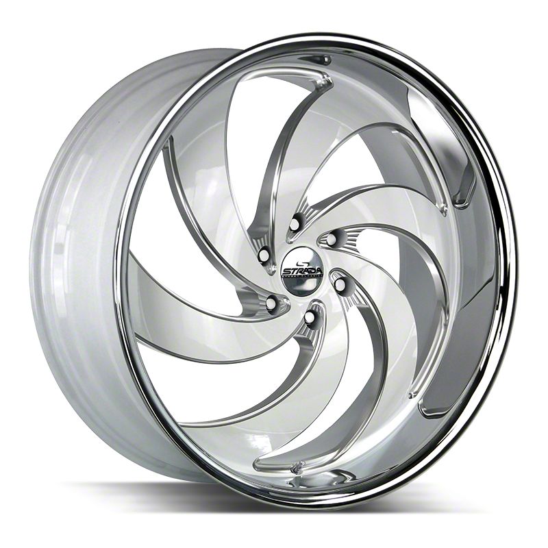 The 24x10 Strada Retro 6 Gloss White Milled with Stainless Steel Lip 6-Lug Wheel; 24x10; 24mm Offset is completed in a high-quality gloss white milled finish with a stainless steel lip, which is sure to turn heads. There is a durable clear coat for extra protection and enhanced appearance that can withstand the rigors of the road.