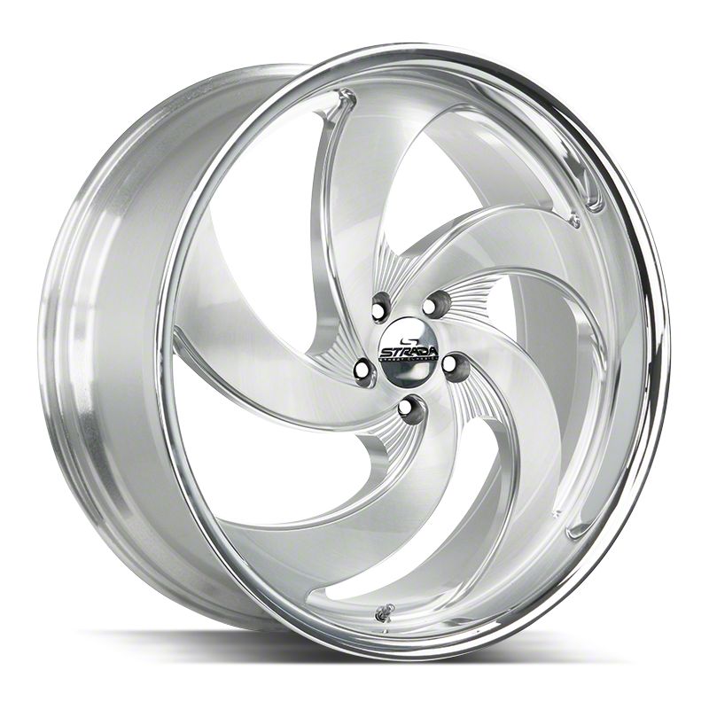 The 22x10 Strada Retro 5 Brushed Face Silver Milled with Stainless Steel Lip 6-Lug Wheel; 22x10; 24mm Offset is completed in a high-quality brushed silver finish with a stainless steel lip, which is sure to turn heads. There is a durable clear coat for extra protection and enhanced appearance that can withstand the rigors of the road.