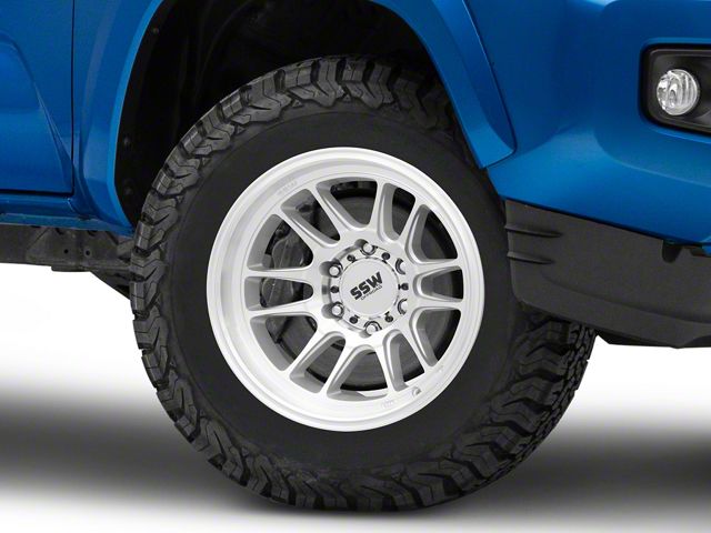 Application. This SSW Off-Road Wheels Raptor Machined Silver 6-Lug Wheel; 17x9; -12mm Offset with a backspace of 4.528 Inch, 115.1mm; and bolt pattern of 6 x 139.7mm (6 x 5.5-Inch), contributes to alignment, driving stability, and ensures a perfect fit with the vehicle model. Designed to fit the 2016-2023 Tacoma. Sold individually.