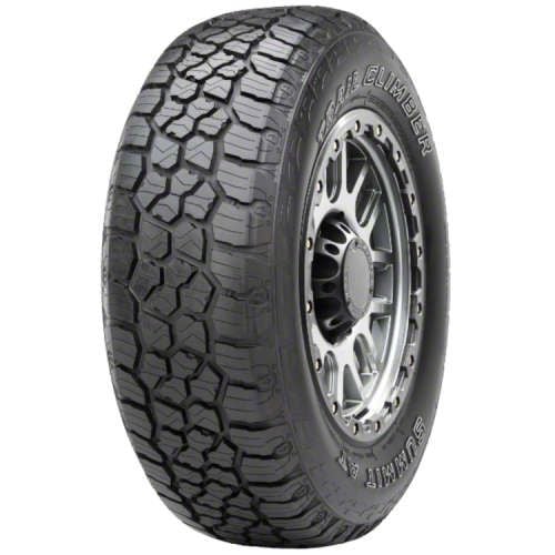 Construction and Appearance. The Summit Tires Trail Climber A/T Tire is constructed with a durable, reinforced sidewall to resist punctures and abrasions. The tread features deep grooves and aggressive biting edges for optimal traction, finished with a rugged black sidewall that complements off-road aesthetics.