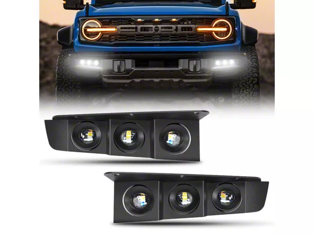 Application. The Suparee Triple LED Fog Lights fit 2021–2025 Ford Bronco models equipped with the modular front bumper fog light provisions.