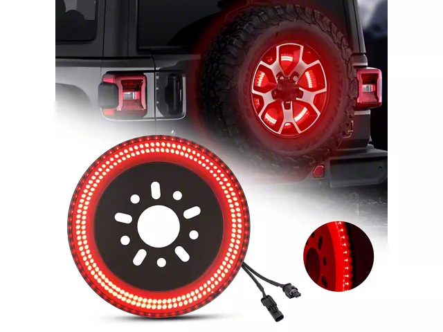 High-Visibility Brake Light Upgrade. The Suparee LED Spare Tire Brake Light enhances both safety and style for your 2018-2026 Jeep Wrangler JL. Featuring a 3-sided design with 400 integrated LED chips, this accessory functions as a spare tire-mounted brake light and third brake light, delivering brilliant illumination for increased rear-end visibility during braking.