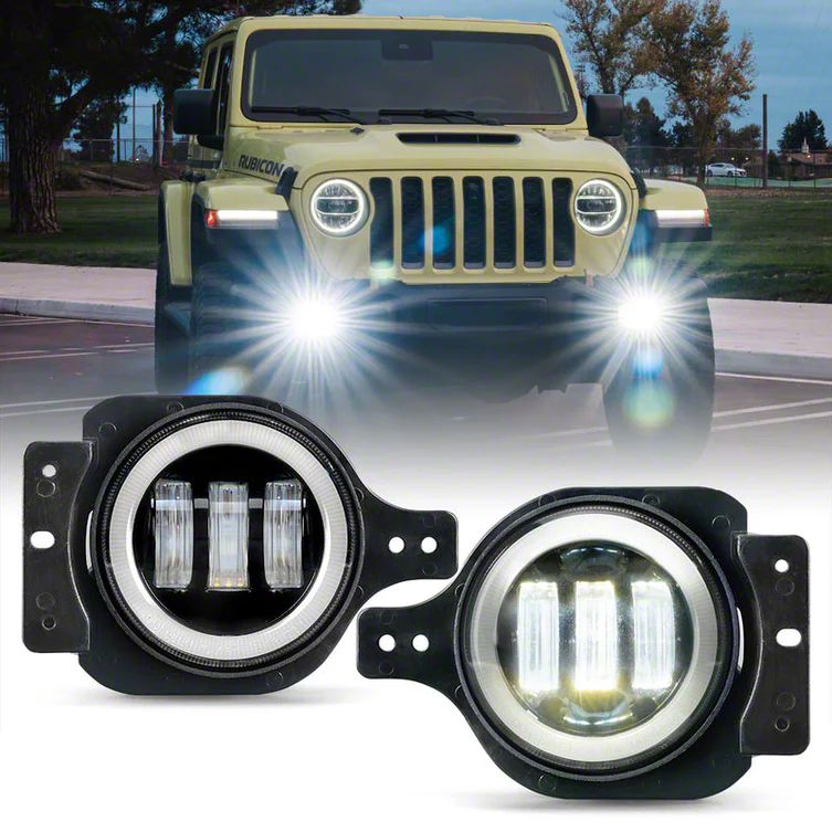 Application. The Suparee 4-Inch LED Fog Lights with White Halo DRL; White fit 2018-2026 Jeep Wrangler JL models.