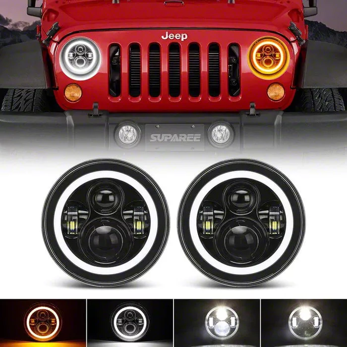Application. These Suparee 7-Inch LED Headlights with White DRL and Amber Turn Signals fit all 1976-1986 Jeep CJ7 models and are compatible with all 1997-2018 Jeep Wrangler TJ and JK models.