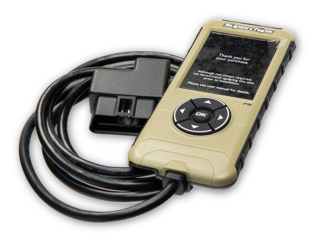 Compact, Convenient and Efficient. Featuring a full color, 2.8-inch high definition screen, this Superchips Flashpaq F5 Tuner has a slim, sleek design that makes it easy to handle and store in your center console or glove box when not in use. Not only is it compact, but its exceptionally graphic interface provides an improved user experience, when compared to the older Flashpaq F4 model. Powered by your vehicle's OBD-II port or USB connection when connected to your PC/Windows computer, this F5 Tuner features increased memory with a high speed processer to provide extraordinary tuning and updating speed.