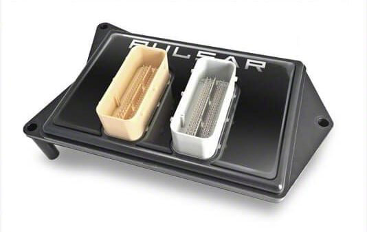 In-Line Module. Instead of a separate hand-held device, this tuning module features precise OEM-compatible connectors that fit your factory PCM perfectly. For the display, it uses your Jeep’s digital dashboard to navigate and adjust tunes on-the-fly.