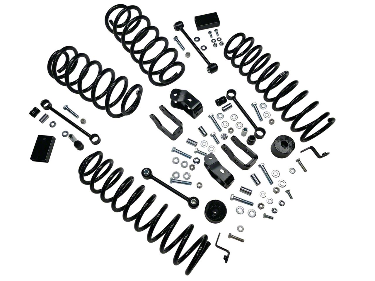 Improves Performance. The SuperLift 2.5 in. Suspension Lift Kit with Fox Shocks is a great upgrade for the Wrangler JL. It delivers a level stance while also delivering excellent ride quality with the included coil springs and high-performance Fox Shocks. The kit includes longer shock brackets and sway bar links for maximum suspension travel. Additionally, the kit includes bump stop spacer that prevents tire rub during maximum compression.