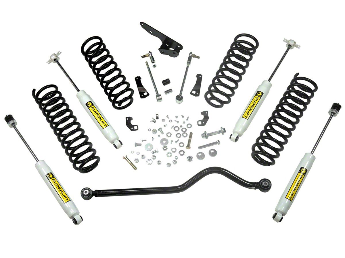 Lifted Coil Springs. The coil springs in this SuperLift 4 in. Value Suspension Lift Kit have been designed to work specifically with the Superide Shock Absorbers included in kit. These springs will not only aid in lifting your Wrangler for increased ground clearance, but they also help to provide a comfortable ride. SuperLift coil springs pre-set to minimize settling and too guarantee a consistent ride height.
