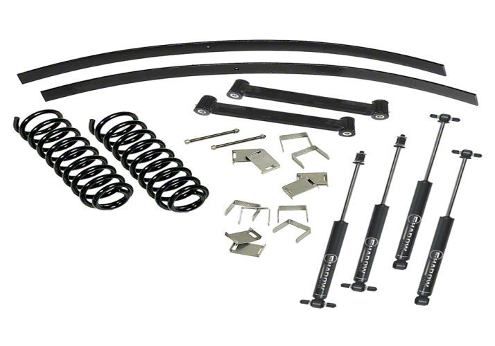 Construction and Appearance. Featuring a durable matte black finish, this lift kit includes high-quality coil springs, SuperLift shocks, and sturdy link arms. Built for strength and longevity, each component is engineered to withstand tough terrain while ensuring smooth ride quality.