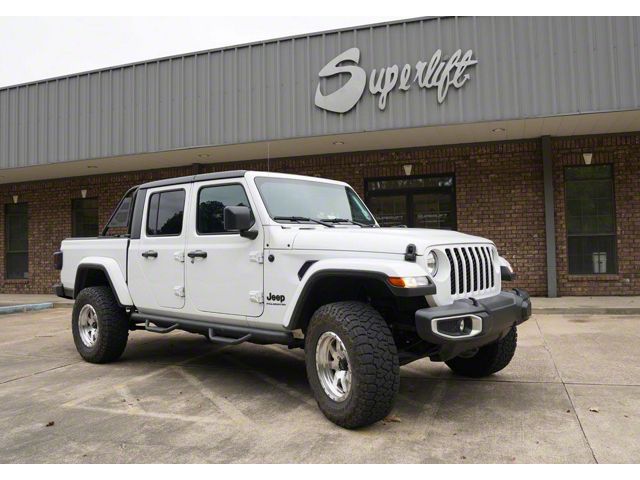 Design. Beyond functionality, this SuperLift 2.50-Inch Suspension Lift Kit profoundly transforms the appearance of your Jeep Gladiator. By lifting the vehicle, it creates a more commanding presence and permits the installation of larger, more robust tires if desired. This enhancement not only boosts the visual appeal but also augments the stance, giving your Jeep a more aggressive and imposing look that’s sure to capture attention. The elevated frame and enhanced tire clearance contribute to a rugged aesthetic that aligns well with the Jeep's heritage, making it even more striking on the road or trail.
