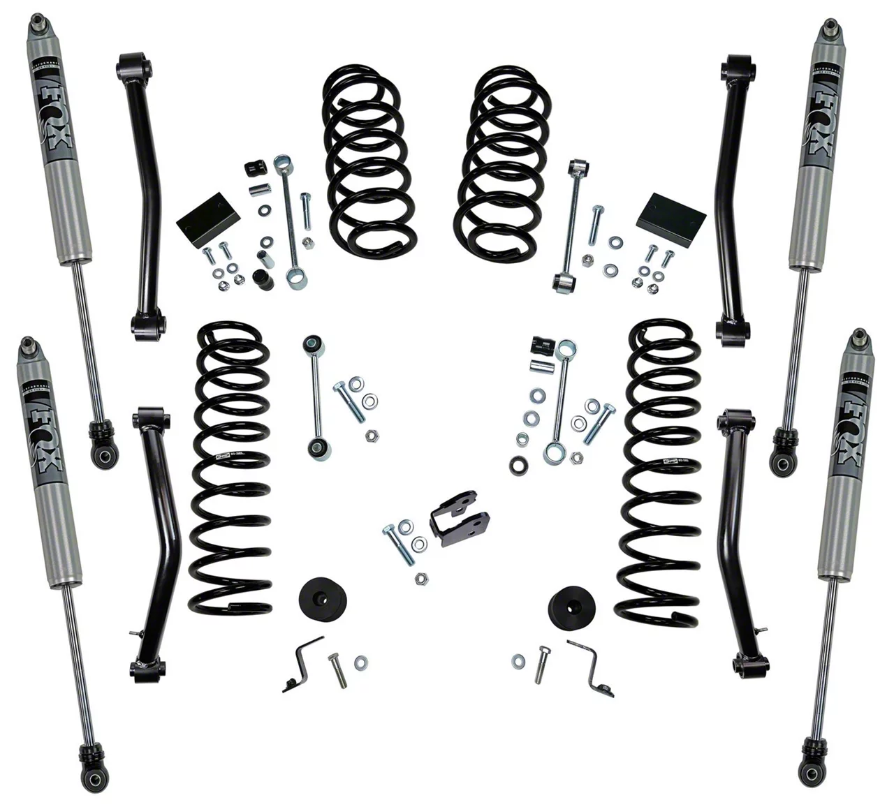FOX Shocks. To reduce your Jeep’s shakiness and vibrations, this kit comes with FOX shocks. These components guarantee to provide a smoother ride by reducing your vehicle’s unwanted spring action and absorbing shocks especially when you’re driving over bumpy paths.