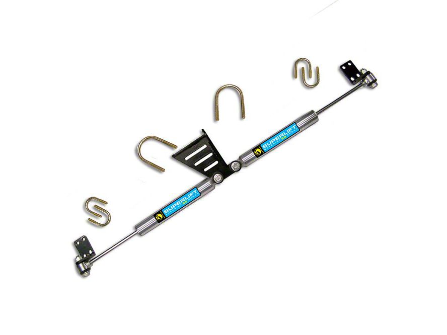 Get More Protection. The dual steering stabilizer of the SuperLift Superide SS by Bilstein High Clearance Dual Steering Stabilizer Kit for 1.5+ in. Lift features Dual Superide cylinders and components to mount the cylinders inline as well as protects the factory steering component system. Less fade, cooler operating temperatures and increased oil capacity are provided by the dual cylinders. To effectively accommodate heavier wheels and tires, valving is of utmost importance. The combination of these components will help to extend the life of the stock steering components.