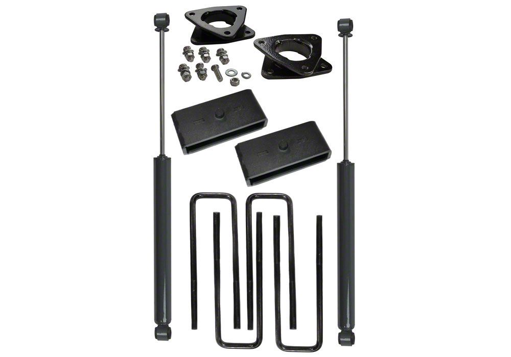 Construction and Appearance. Featuring a durable matte black finish, this lift kit includes high-quality components such as Shadow Series shocks, lift blocks, U-bolts, and spacers. Each part is built for strength and longevity, ensuring dependable performance in various driving conditions.