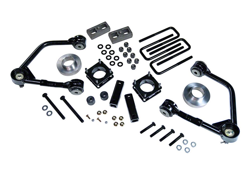 Equipped With a Rear Block Kit. To prevent your truck’s rear from bottoming out, this SuperLift 3-Inch Suspension Lift Kit comes equipped with a rear block kit. The kit consists of rear blocks and U-bolts that help put back your truck’s rake even when you’re hauling or towing.
