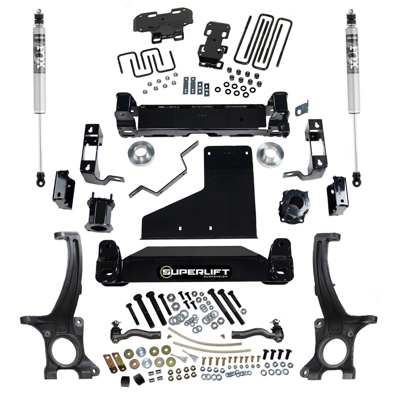 Smooth and Stable Ride Quality. SuperLift designed the FOX Shocks in this kit with an application-specific valving that instantly adjusts to changing terrain conditions for maximum comfort and control. These monotube shocks are engineered for cooler, more efficient operation, and long service life. Moreover, the shocks allow the maximum amount of extension travel without sacrificing on-road durability.