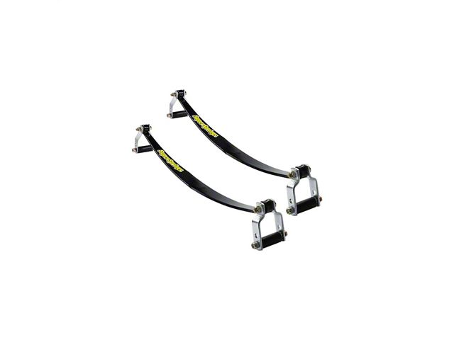 Enhanced Load Support. Rear Leaf Spring Helpers are designed to boost the load-carrying capabilities of your truck without sacrificing ride quality. These helpers bolt onto your factory leaf spring pack and self-adjust during suspension travel, helping to reduce sway and wheel hop while maintaining a smooth ride. Rear Leaf Spring Helpers level your suspension when hauling heavy loads, providing better control and reducing rear-end sag caused by suspension fatigue.