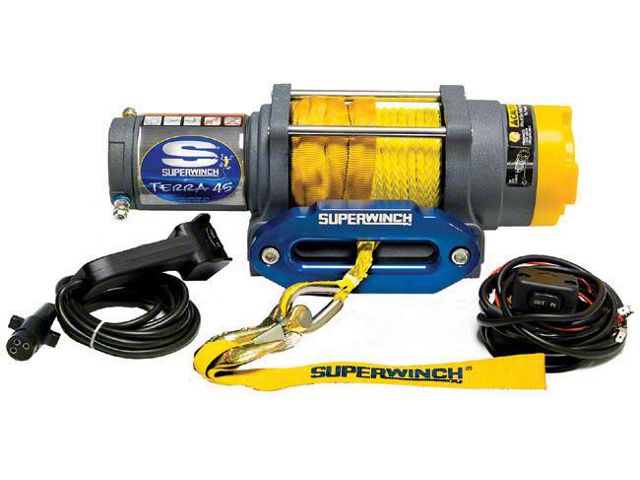 Premium Light-Duty Winch. The Superwinch 4,500 pound Terra 45SR Winch with Synthetic Rope is a quality, light-duty winch. This product features a compact form factor and is lightweight while still retaining a 4,500-pound line pull to pull yourself or others across challenging terrain quickly.