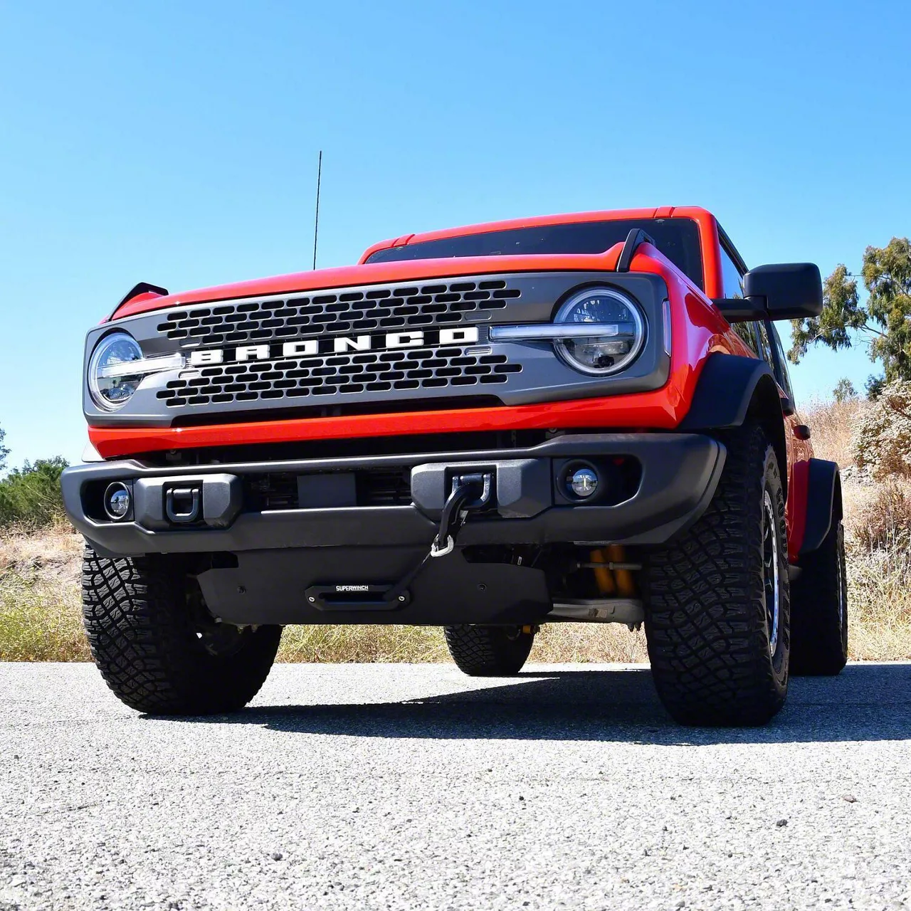Secure and Stealthy Winch Mounting. The Superwinch Winch Mount offers a hidden, low-profile design that provides the perfect balance of function and aesthetics. Designed to support medium frame winches ranging from 8,000 to 12,000 pounds, it ensures you’re prepared for tough recovery situations without compromising your Bronco’s front-end appearance.