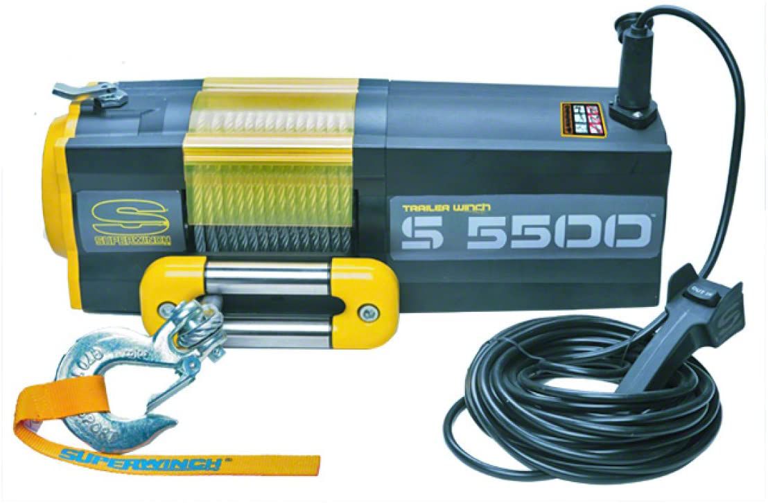 Trailer-Specific Winch. Superwinch’s 5,500 pound S5500 Winch with Steel Cable is a premium, trailer-specific winch with a stout 5,500-lb weight rating, allowing you to load up your Jeep or other small to medium-duty vehicles. In addition, this winch makes loading vehicles onto your trailer a breeze, eliminating the need to drive or push them up.