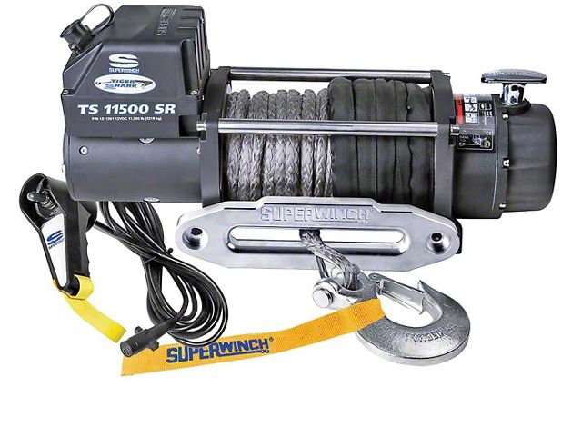 High-Performance Winch. The Superwinch 11,500 pound Tiger Shark 11500 Winch with Synthetic Rope is a premium, heavy-duty winch featuring an 11,500-Lb line pull rating. This winch accomplishes its impressive specifications through a high-performance 5.8-HP motor, 218:1 3-stage planetary gearset, and ?-Inch thick synthetic rope. This winch is ideal for mid to full-size applications.