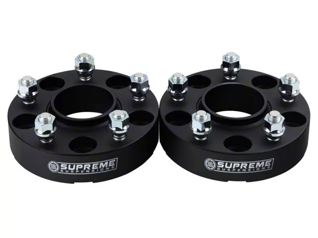 T6 Aluminum Construction. These Supreme Suspensions 1.25-inch Pro Billet Hub & Wheel Centric Wheels Spacers are precision-machined from aircraft-grade aluminum for superior strength, toughness, and durability while still being lightweight. Additionally, the studs are pressed and not glued-on for added strength. Furthermore, these Wheel Spacers come with an anodized finish to protect against corrosion.