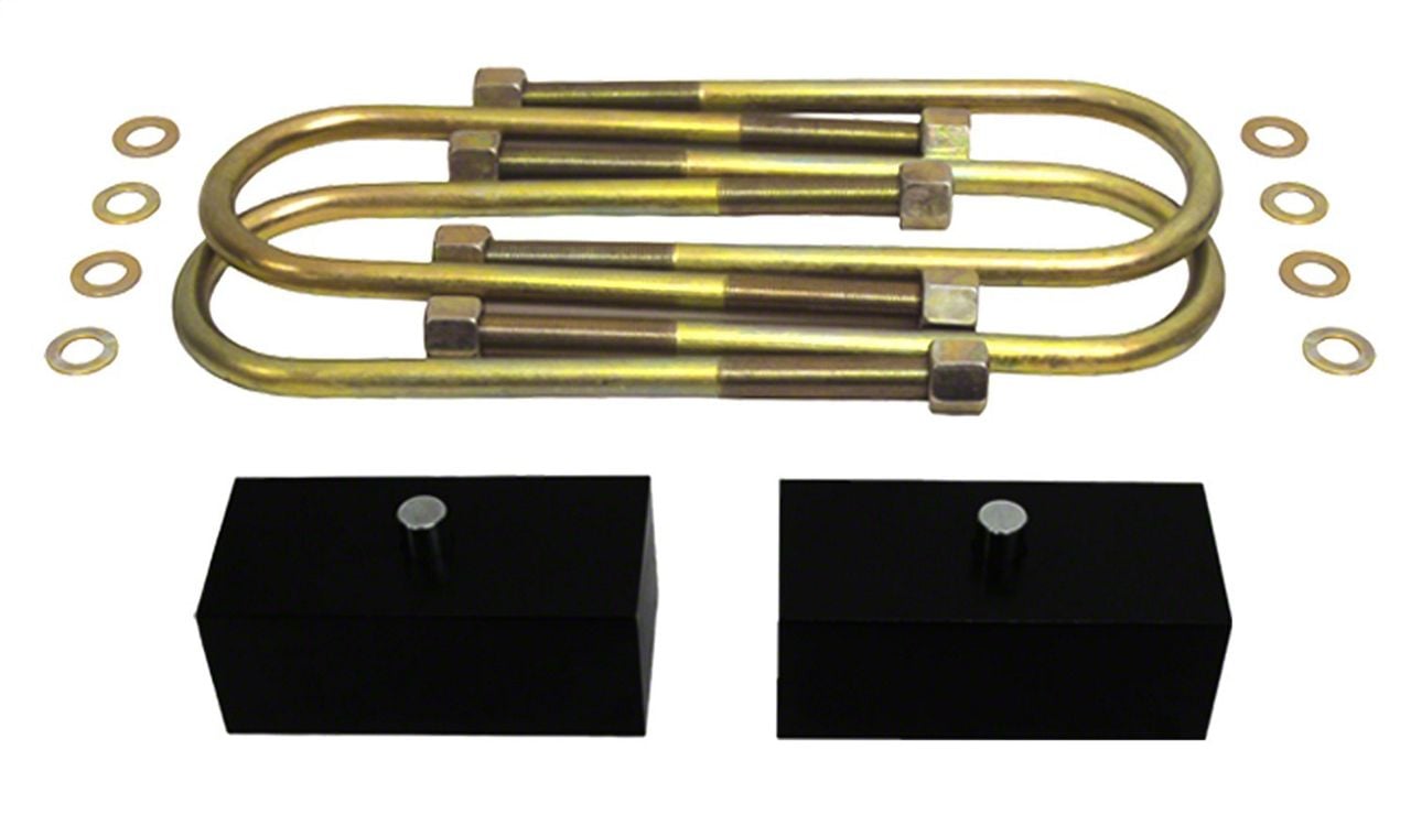 High-Quality T6 Aluminum Construction. The Supreme Suspensions 1.50-Inch Pro Billet Rear Lift Blocks are CNC-machined from aircraft-grade T6 aluminum. Instead of welding together multiple pieces of metal, these lift blocks are made from a single billet aluminum block, enabling them to withstand more stress and extreme conditions without warping or bending. They’re then coated with a hard-anodized finish, adding more protection against rust and corrosion. The kit is completed with high-grade hardware and extended OEM spec zinc-plated U-bolts.