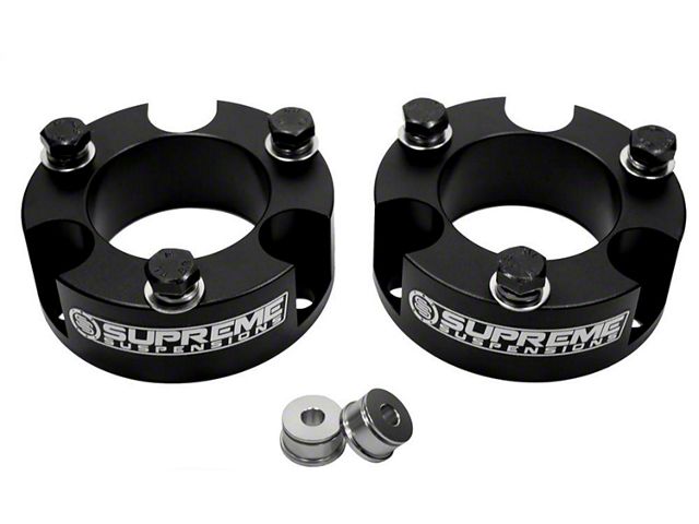 Improve Handling and Performance. Get the maximum potential out of your Toyota Tacoma with these Supreme Suspensions 2-inch Pro Billet Strut Spacers. Designed to increase the front-end ground clearance of your off-road vehicle, these strut spacers allow for installation of wider and larger tires. With better ground clearance, you also get to enjoy improved handling and corner-holding ability. Indeed, these strut spacers will help you better navigate steep and unfamiliar off-road terrains.