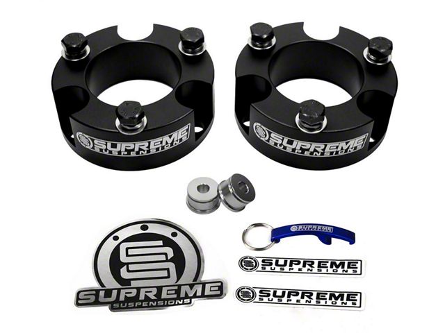 Application. Supreme Suspensions 2.50-inch Pro Billet Strut Spacers fit all 2005 to 2023 Toyota Tacoma 6-Lug models.