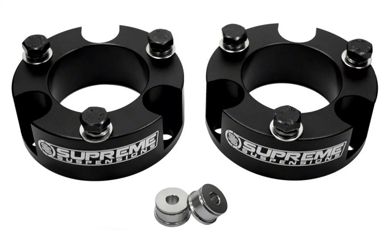 Hassle-Free Bolt-On Installation Without Modifications. Supreme Suspensions 3-Inch Pro Billet Strut Spacers will bolt-on directly to your Tacoma’s front struts without modification. These spacers include mounting hardware for a hassle-free install procedure. Please note that a wheel alignment is recommended after installation.