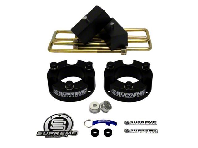 Military-Quality Aircraft Aluminum. Built from heavy-duty aircraft aluminum, the Supreme Suspensions 3-Inch Front / 3-Inch Rear Pro Billet Lift Kit promises durability that surpasses expectations, especially for off-road enthusiasts looking for a bulky upgrade for their suspension system.