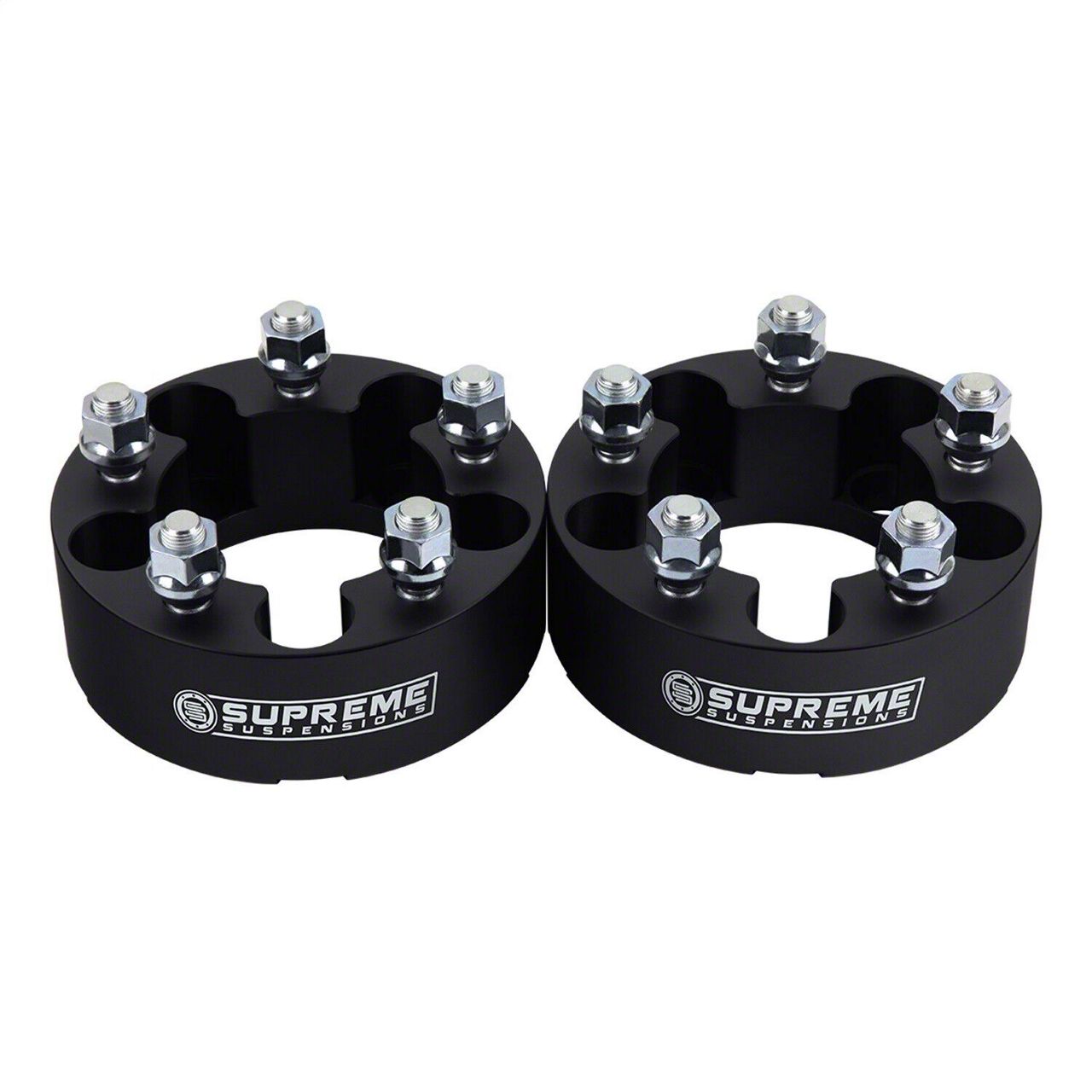 1.5 in. Wide Spacer / 5 x 114.3mm Bolt Pattern / 82.5mm Center Bore / Without Lip. Supreme Suspension Pro Billet Wheel Spacers are precision engineered to widen your tire track by 1.5 in. on each side, improving the look of your vehicle and accommodating wider custom rims and tires. Supreme Suspensions products are developed and rigorously tested by in-house ASE certified specialists,in conjunction with dealerships and professional racers across the United States. Our Pro-Billet Series Wheel Spacers are CNC machined from solid blocks of T6 Aircraft Billet and receive a special anodized coating. Renowned for its sheer strength and light weight, this premium material is guaranteed to withstand even the most extreme environments. Each spacer features splined studs that are pressedinto place rather than glued asin many of the lesser, knock-off wheel spacers on the market. Once our spacers are properlyinstalled, they stayinstalled without the risk of vibrations or imbalance. Please verify fitment compatibility prior to ordering. Your factory wheel studs may need to be shortened to ensure safe fitment of the wheel.