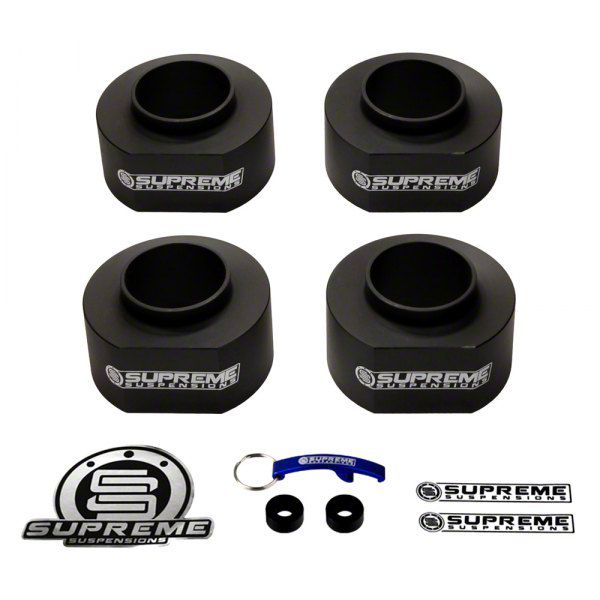 Superior Permanent Lifting. Transform your ride's performance and aesthetic with the Supreme Suspensions 2-Inch Front / 2-Inch Rear Pro Billet Suspension Lift Kit. This premium lift kit, designed for heavy-duty driving and loading, this suspension upgrade offers a blend of impressive ground clearance, robust build quality, and a strikingly aggressive stance, making it the ideal choice for off-road enthusiasts and style-conscious drivers alike.