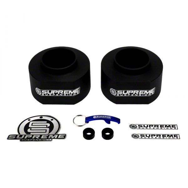 Convenient Installation. The Supreme Suspensions 2-Inch Pro Billet Rear Spring Spacer Leveling Kit comes with hardware and comprehensive instructions, so you can get back on the road in no time.